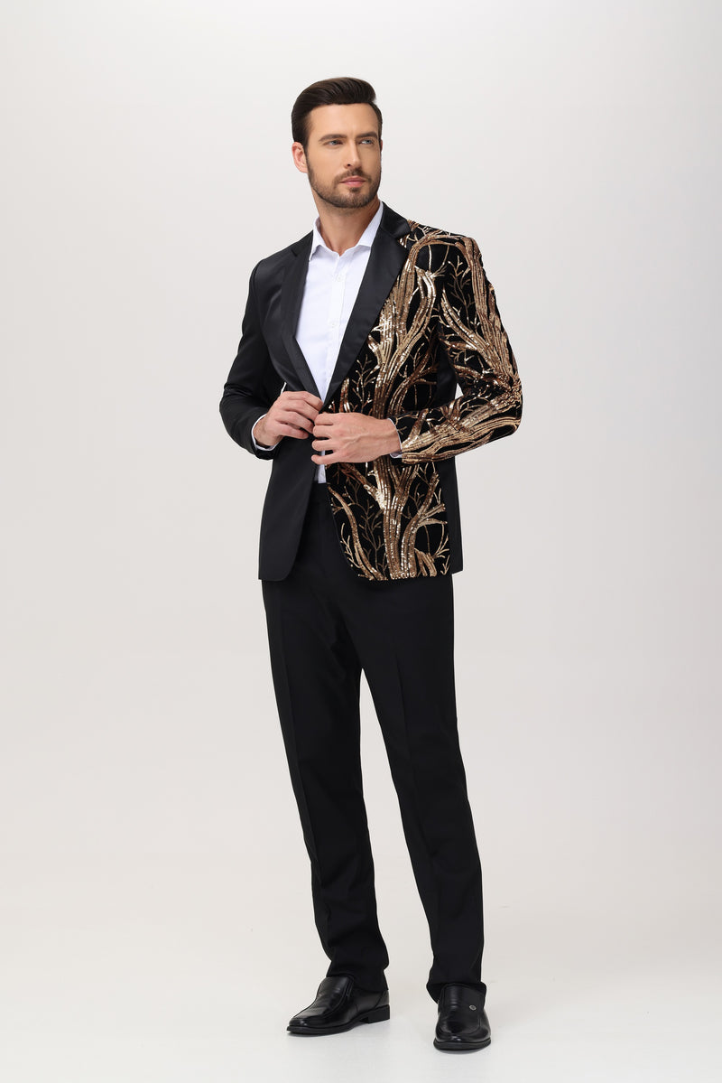 Men's 2-Piece One Button Sparkling Gradient Sequin Gold Tuxedo